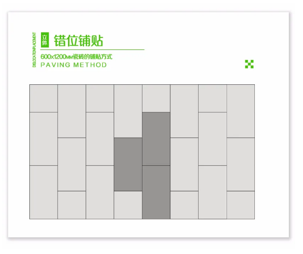 成都浩轩日用化妆品有限公司600x1200MM系列的铺贴方式多样化,直铺、工字型、回字形、混合铺贴等等都可适用,只有你想不到没有办不到的。