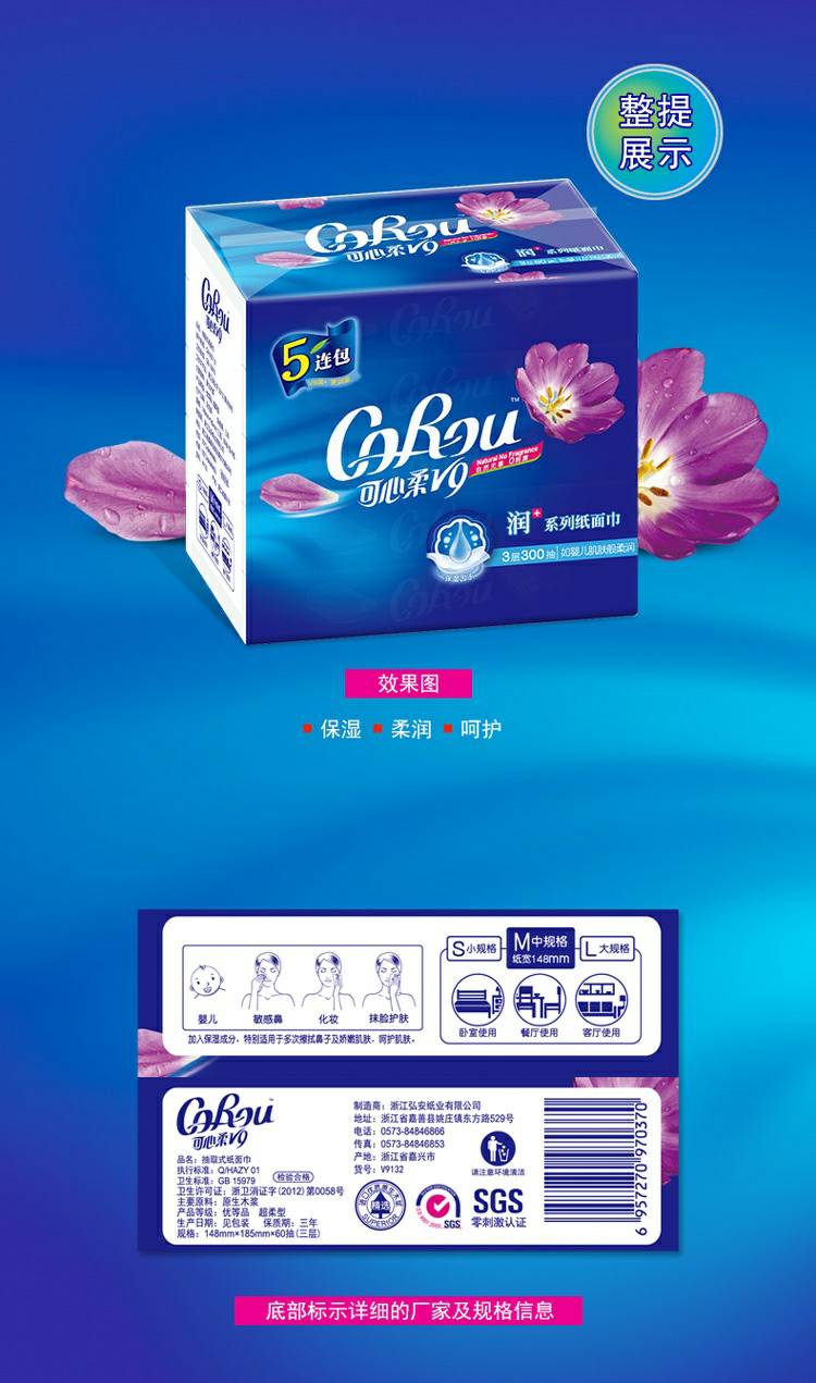 CoRou V9润+系列CoRou云柔系列白色木浆60抽